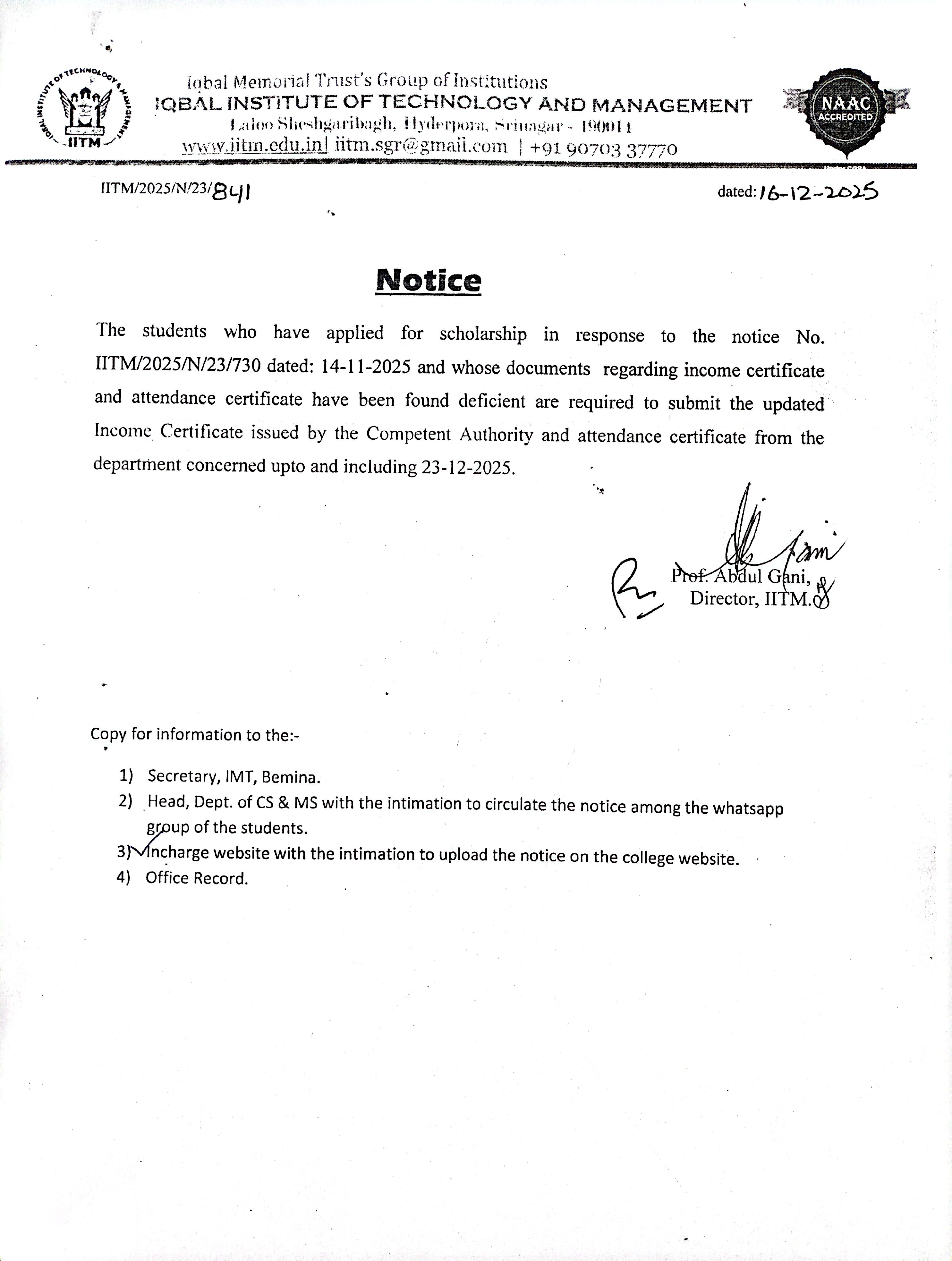 Official Inspection for Continuation of BCA, BBA, and MBA Programmes – 2025–26