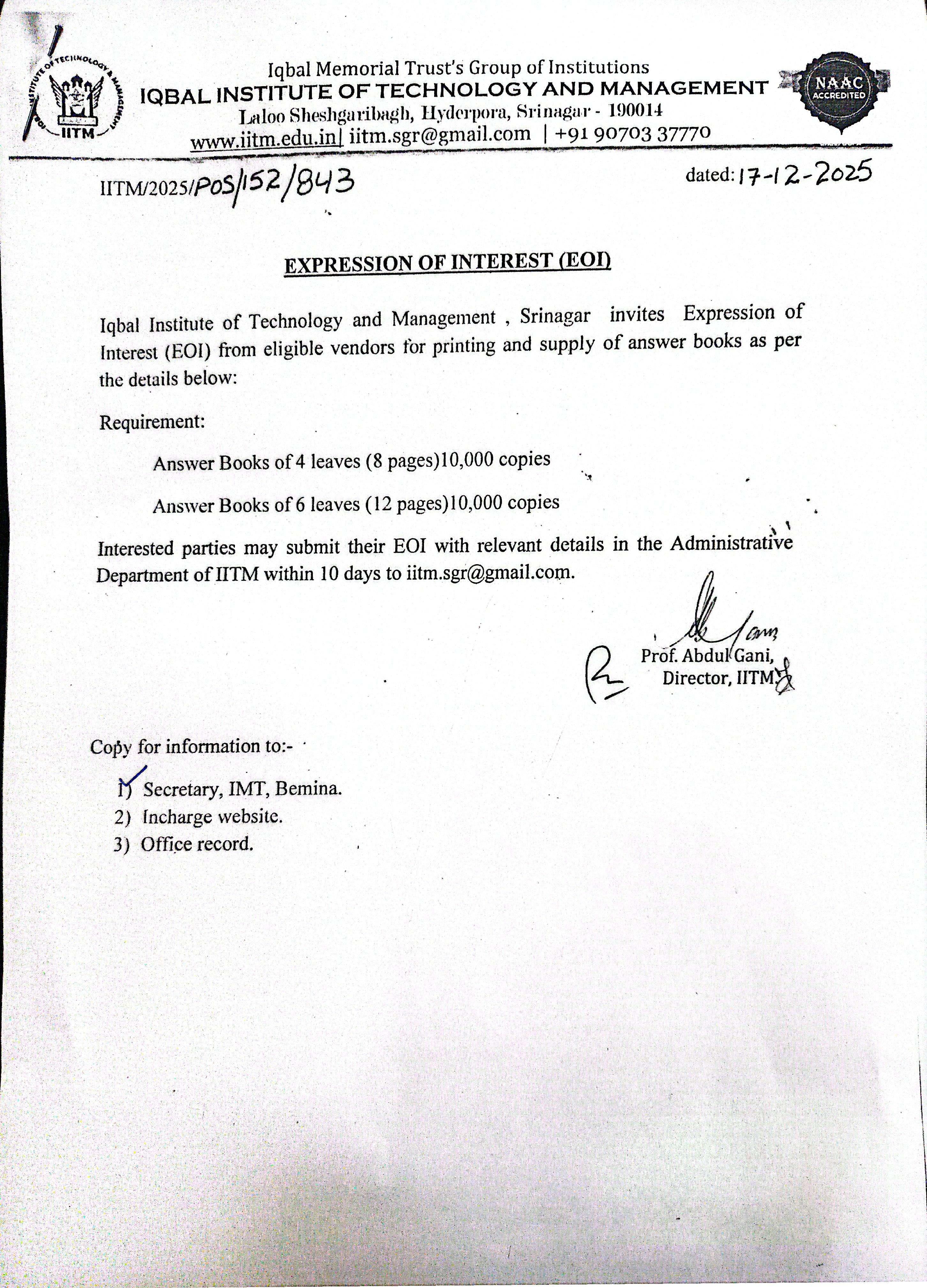 Inspection Visit Held at IITM for Academic Session 2025–26